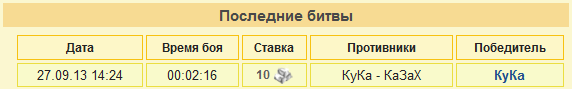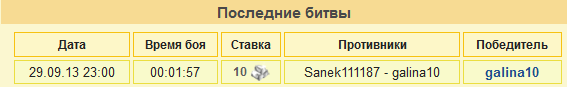 Leaveпишет дляdevil_1864Дата: 20:42 27.09.2013 спутал немного когда сразимся? Прошу организатора зафиксировать не выход на связь как автоматический проигрышь