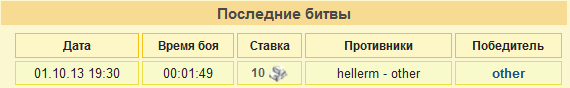 Характеристики самих сражений - по желанию сторон. Т.е. можете выставлять сколько пожелаете бобров, башен, серебра.. По сути не важно. Главное чтобы бой состоялся. Рекомендую не заморачиваться, а указывать минимальные значения, чтобы не напряжно было обоим сторонам.