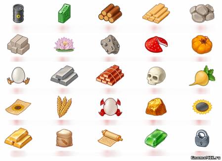 Ресурсы - это элементы игрового процесса "гномограда", которые необходимы для улучшения построек и постройки монстров на карте. Их можно добыть с помощью взрывов построек или монстров. А также вы можете их купить на черном рынке или обычном, покупая (продавая) их за монеты или за рубины. Рассмотри их поближе и подробнее...