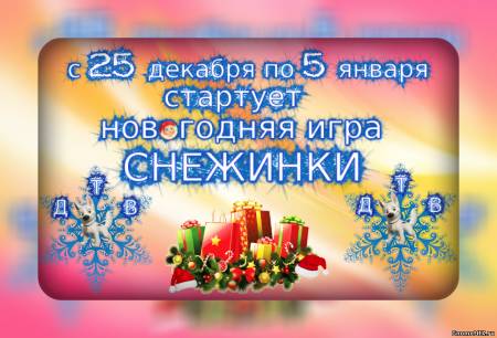 Говорят, Новый Год полон чудес. И в нашем гномограде это не исключение. И мы решили немного порадовать наших пользователей приятной новостью и окунуть уже завтра в ароматы Нового Года! С 25 декабря по 5 января включительно стартует новая новогодняя игра "Снежинки".